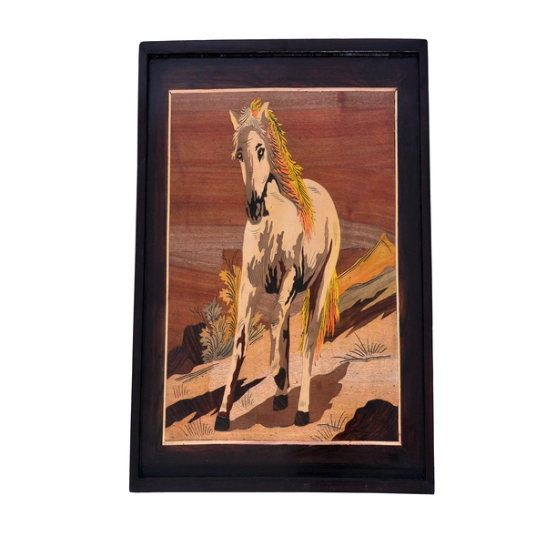Perfect for lovers of horses, nature, or finely crafted decor, this rosewood inlay piece adds a touch of rustic luxury to any interior.
